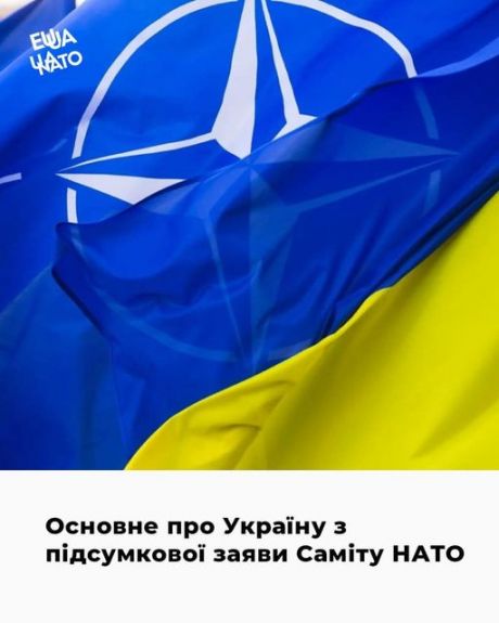 «Ми повністю підтримуємо право України обирати власні механізми безпеки. Майбутнє України - в НАТО. Ми підтверджуємо зобов'язання, яке взяли на саміті 2008 року в Бухаресті, що Україна стане членом НАТО, і сьогодні ми визнаємо, що шлях України до повної євроатлантичної інтеграції вийшов за межі необхідності виконання Плану дій щодо членства», – заявили лідери НАТО.