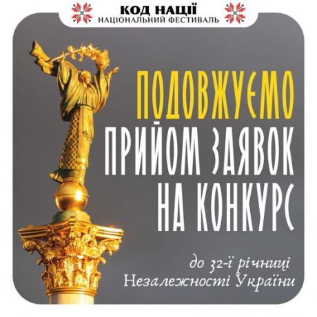 Організатори конкурсу ухвалили рішення про подовження прийому заявок на Всеукраїнський конкурс творчих проєктів «Код Нації» до 32-ї річниці Незалежності України по 23:59 20 серпня.