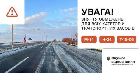 Баштанська районна військова адміністрація повідомляє, що за інформацією Служби відновлення та розвитку інфраструктури у Миколаївській області знімається обмеження для всіх категорій транспорту на трьох напрямках з 18-00 27.11.2023 знімається обмеження руху для всіх категорій транспортних засобів на ділянках автомобільних доріг:
