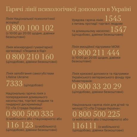 Зазначимо, що гарячі лінії діють за підтримки Всеукраїнської програми ментального здоров’я «Ти як?» створеної за ініціативою першої леді