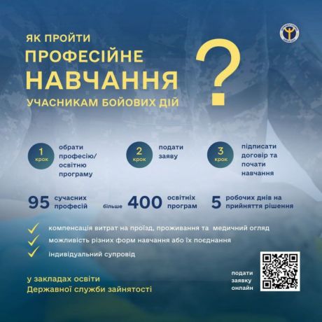 ℹ️ Як учасники бойових дій можуть безкоштовно пройти професійне навчання ❓ Для цього необхідно здійснити лише 3️⃣ кроки: