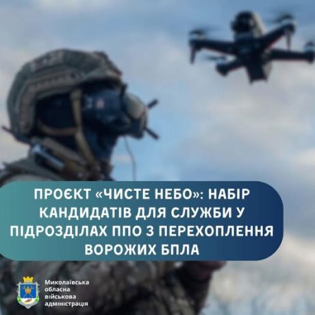 Проєкт «Чисте небо»: набір кандидатів для служби у підрозділах ППО з перехоплення ворожих БпЛА