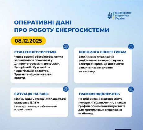 Ситуація в енергосистемі на 8 грудня