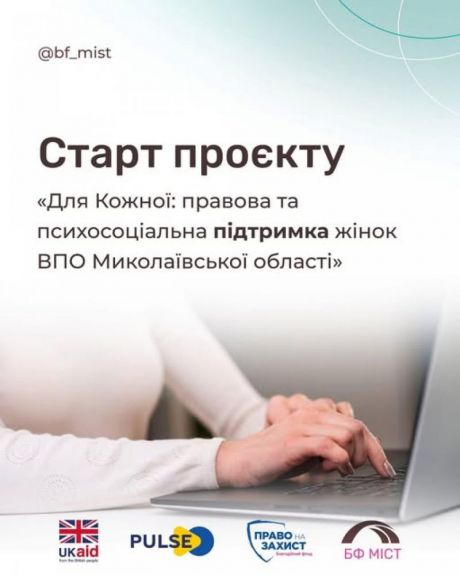 З наданням комплексної підтримки Благодійний фонд «Центр соціального розвитку «Міст» розпочинає реалізацію проекту «Для кожного: правова та психосоціальна підтримка жінок ВПО Миколаївської області».