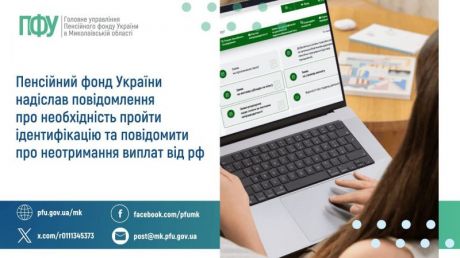 Пенсійний фонд України надіслав повідомлення про необхідність пройти ідентифікацію та повідомити про неотримання виплат від рф