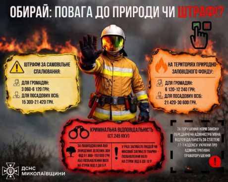 З настанням весни ми щороку стикаємось з «традицією», яку неможливо виправдати — спалюванням сухої рослинності. Якщо аргументи про знищену флору, загиблих тварин та власну небезпеку громадян не зупиняють, варто пам’ятати: у кожного багаття є своя ціна, закріплена законом.