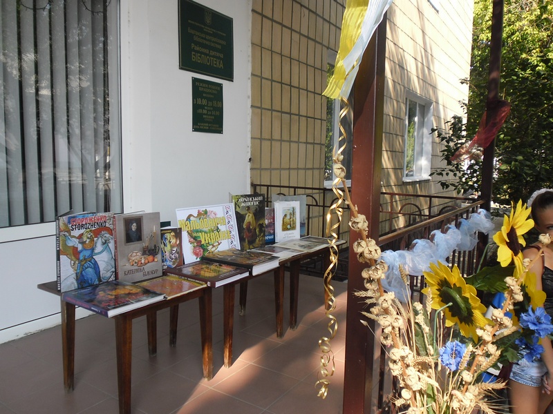23 серпня, напередодні Дня незалежності України в центральній районній бібліотеці було проведено літературно-мистецький пленер «Мальовнича Україна», в якому прийняли участь дорослі та юні користувачі бібліотеки, її працівники і просто перехожі, яких привабив гарно прибраний, святковий майданчик біля бібліотеки. До уваги учасників провідним бібліотекарем ЦРБ Штефан Л.В. було представлено книжково-ілюстративну виставку, яка презентувала прекрасні, яскраві видання про художників України та їх творчість. А бібліотекар Пащук Р.Ю. запропонувала всім учасника пленера прийняти участь у конкурсі малюнків на асфальті. Незабаром цікаві, різнокольорові художні роботи, присвячені рідній Україні, прикрасили асфальтову доріжку перед бібліотекою. По закіченню - всі юні художники отримали солодкі подарунки.