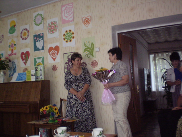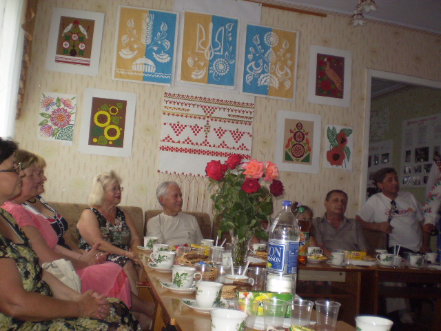 З щирими вітаннями та найкращими побажаннями звернулися до Олени Михайлівни директор Баштанської ЦБС Г.І. Борщевецька, члени клубу М.І. Василенко, Л.В. Авраменко, від працівників районного відділу культури з прекрасним романсом виступив О.Л. Полівода. В.Д. Гребьонкін привітав майстриню та подарував їй свій власний вірш про витинанки, а подружжя Шведових - свої прекрасні, мелодійні пісні. Сюрпризом для Олени Михайлівни стало вітання колег з районного Будинку культури, які задушевними українськими піснями зачарували всіх присутніх та поздоровлення її маленької учениці Софії Данчак.