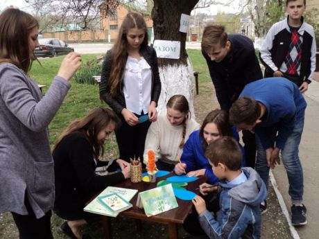 В ході акції відбувся екологічний ерудиціон «За чисте довкілля», учасниками якого стали учні 10-А класу та представник ЗОШ №2 Н.М.Адрукайтес, користувачі бібліотеки та мешканці міста. Перед початком ерудиціону бібліотекар Змієвська Н.М. коротко розповіла про екологію – науку, що вивчає теоретичні основи охорони природи і раціонального використання її ресурсів, ознайомила з Червоною книгою України, інформувала про стан довкілля міста Баштанки. А потім учасники з великим задоволенням та інтересом мандрували екологічною стежинкою, де на них чекали цікаві зупинки: «Природнича», «Екологічна», «Квіткова», «Довкілля», «Подарунок Землі». Вони активно, кмітливо, логічно виконували різні завдання: викладали квітку «Що корисного я отримую від природи», відгадували загадки «Про природу згадай, відповідь давай», читали прислів’я та приказки про рослин та тварин, вигадували та малювали природоохоронні знаки, надавали друге життя предметам, які перестали бути потрібним та дарували планеті Землі свої обіцянки, щодо бережливого ставлення до природи. Непідробну зацікавленість у збереженні природної краси та юнацьку завзятість і широку фантазію проявили Цегельник Антон, Ус Катерина, Чега Анастасія, Бойченко Тетяна, Кожушко Лілія, Жукова Олена, Негода Ярослав, Жуляєв Денис. Своїми глибокими знаннями про навколишній світ здивував усіх присутніх наймолодший учасник ерудиціону Кострубський Михайлик, учень 4-А класу ЗОШ №1. На закінчення заходу юнаки та дівчата висадили квіти біля бібліотеки.