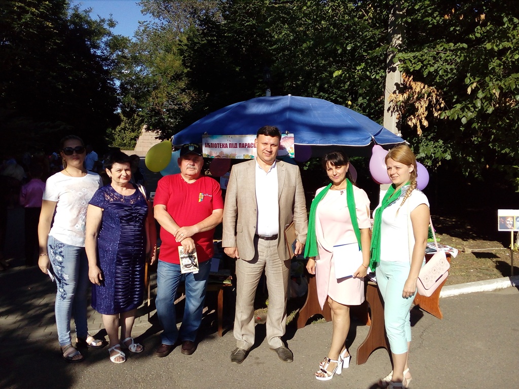 Активну участь у роботі «бібліотеки під парасолькою» приймали і провідний бібліограф ЦРБ Іщенко Н. В., бібліограф по дитячій літературі Доник Г. П. та інженер-програміст ЦРБ Крижановський І. В.