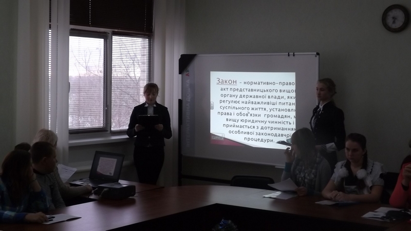 Методист районного відділу освіти Тетяна Вікторівна Гриненко запросила учасників конференції до наукового диспуту на задану тему, звернула увагу учнівської аудиторії на найважливішу характеристику громадянського суспільства – рівень сформованості активної громадянської позиції членів суспільства та їх відповідальності не тільки за свою власну долю, а й за долю України. Підкреслила, що на сучасному етапі Україна переживає складний процес реформування свого правопорядку і його адаптації до нових соціально-політичних і економічних умов.