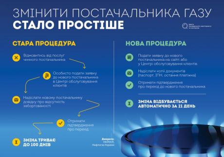 Нова компанія має для цього термін до 20 днів, однак конкуренція вже змушує компанії реагувати швидше. Після завершення процедури зміни постачальника новий постачальник протягом трьох робочих днів письмово повідомляє побутового споживача про дату, з якої здійснюється постачання природного газу.