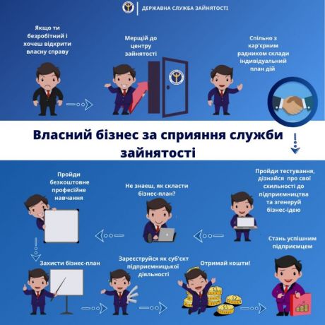 Механізм відкриття власної справи за сприяння служби зайнятості є послідовним та поетапним процесом. Шукачам роботи, які виявили інтерес до самозайнятості пропонується пройти профорієнтаційне тестування на визначення підприємницького потенціалу.