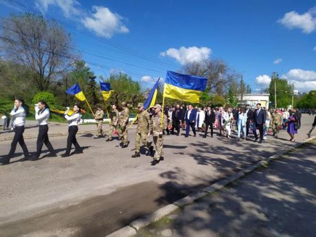 В пішій колоні разом з керівництвом району та міста пройшли ветерани російсько-української війни на сході нашої країни, учнівська молодь та жителі Баштанки.