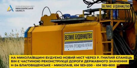 На Миколаївщині будується новий міст через р. Гнилий Єланець, який є частиною реконструкції дороги державного значення Н-24 Благовіщенське — Миколаїв, км 183+200 — км 185+800.