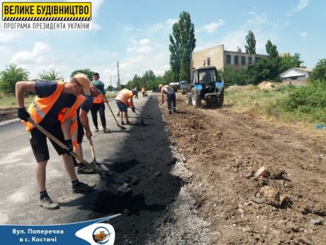 Дорожні працівники виконували роботи на об'єкті капітального ремонту комунальної власності по вул. Поперечна в с. Костичі та по вул. Миру в с. Радісний Сад.