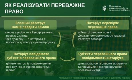 3. Власник має зареєструвати у нотаріуса намір продати ділянку не пізніше ніж за 2 місяці до дня укладення договору купівлі-продажу землі. Проте, навіть без реєстрації наміру орендар сам може повідомити власника про те, що має намір викупити його ділянку.