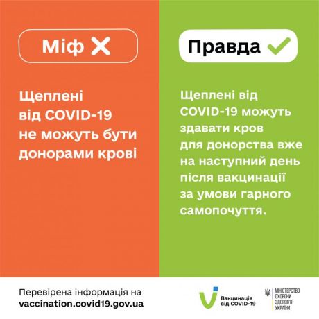 Міф: Щеплені проти COVID-19 не можуть бути донорами крові