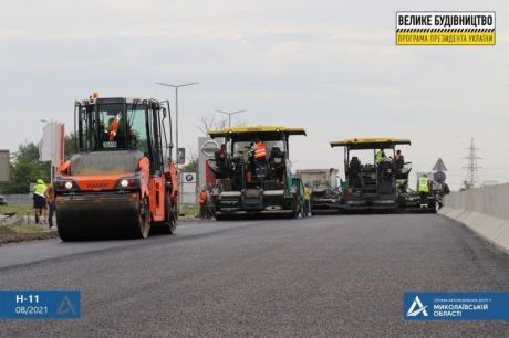 Від виїзду з Миколаєва у напрямку Баштанської кільцевої розв’язки стартувало укладання фінішного шару покриття. Спочатку дорожники обробляють дорогу бітумною емульсією для кращого зчеплення між собою шарів асфальтобетону. Далі за допомогою асфальтоукладальних машин влаштовують ЩМА-20 з наступним ущільненням котками.