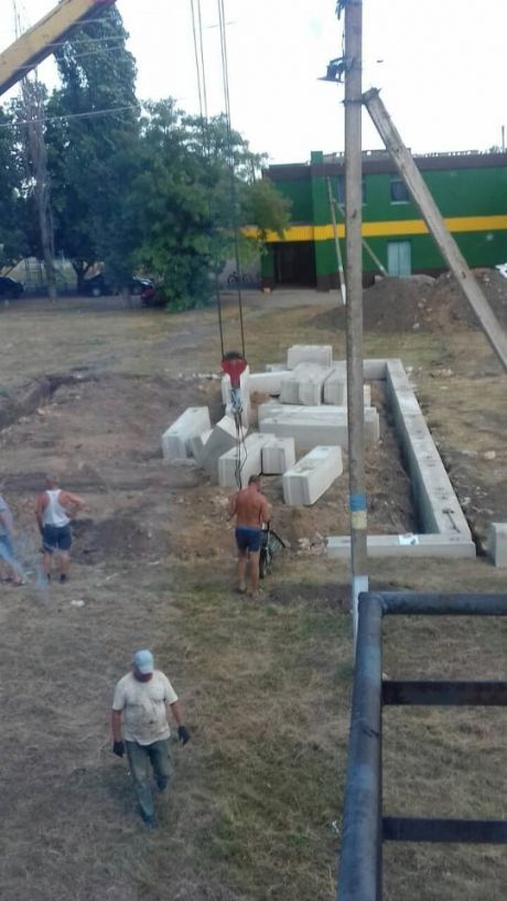 Наразі вже виконані роботи : покладені фундаментні блоки, підготовлено до бетування опалубку та змонтовано арматуру.