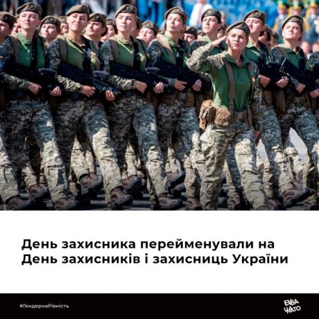 Документ змінює назву державного свята «День захисника України» на «День захисників і захисниць України», оскільки попередня назва не повністю передає його суть та зміст. Адже поруч із чоловіками-захисниками Україну боронять також і жінки-захисниці.