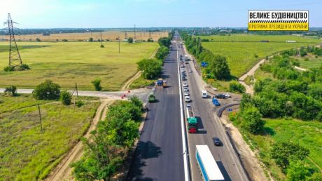Наразі влаштовано верхній шар щебенево-мастикового асфальтобетону однією смугою руху. Підрядник перебазував дорожню техніку на іншу смугу і продовжує укладання фінального шару покриття у Дніпропетровському напрямку.