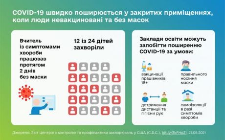 Детальніше про випадок в американській школі у звіті Центрів з контролю та профілактики захворювань у США (C.D.C.): bit.ly/3kFHpZi.