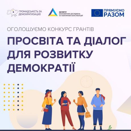 Інститут економічних досліджень та політичних консультацій в межах програми «Громадськість за демократизацію», яка фінансується Європейським Союзом, оголошує конкурс грантів «Просвіта та діалог для розвитку демократії»