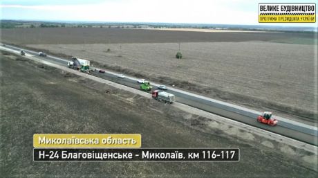 У рамках реалізації програми Президента України Володимира Зеленського «Велике будівництво» триває відновлення однієї з найпріоритетніших доріг Миколаївської області — автодороги Н-24 Благовіщенське-Миколаїв.