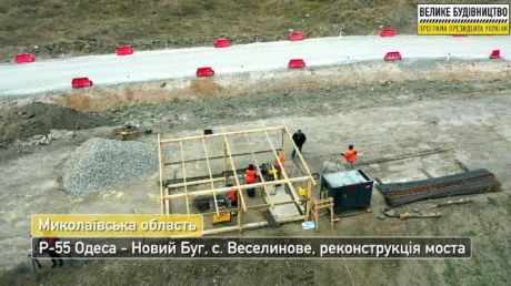 Активные фазы завдяки программы Президента Украины Володимира Зеленского «Великое будівництво» трива ремонт мостов на автомобильном дорозе Р-55 Одесса-Вознесенск-Новий Буг у селищі Веселинове.