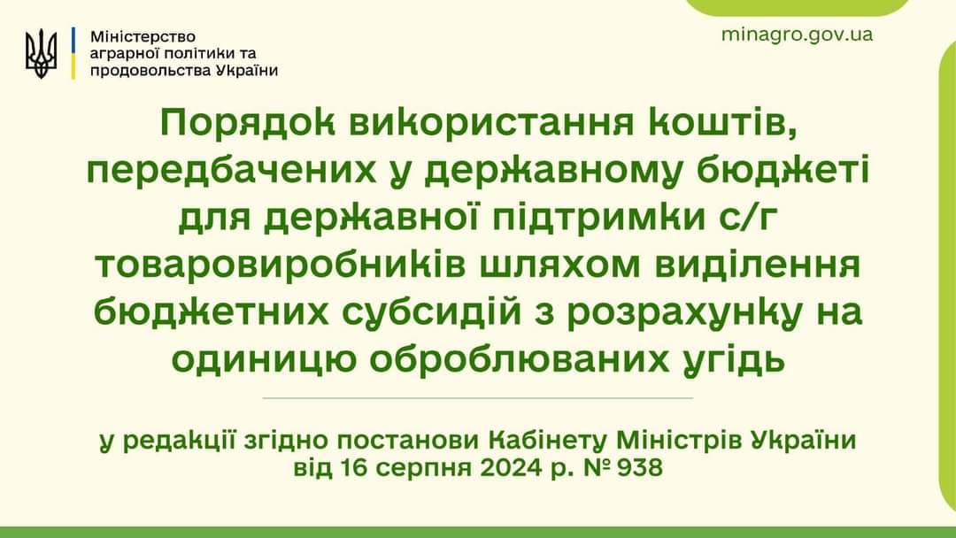 Новий документ розширює напрями державної підтримки аграріїв, зареєстрованих у Державному аграрному реєстрі, та збільшуються суми виплат.