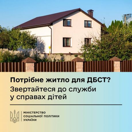 Служба у справах дітей Баштанської районної військової адміністрації інформує, що дитячий будинок сімейного типу (великоприйомна сім'я) може отримати житло за кошти субвенції з державного бюджету, яку виділяє Міністерство соціальної політики України.